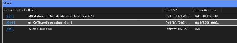 This is the stack of KiInterruptDispatchNoLockNoEtw on VMCS when the VMEXIT happens due to the exception -