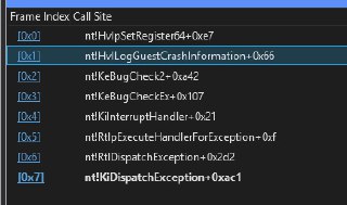 Still, being flooded with HvlLogGuestCrashInformation, EXCEPTION_ON_INVALID_STACK, with my vm_exit_dispatcher on the "faulty code".